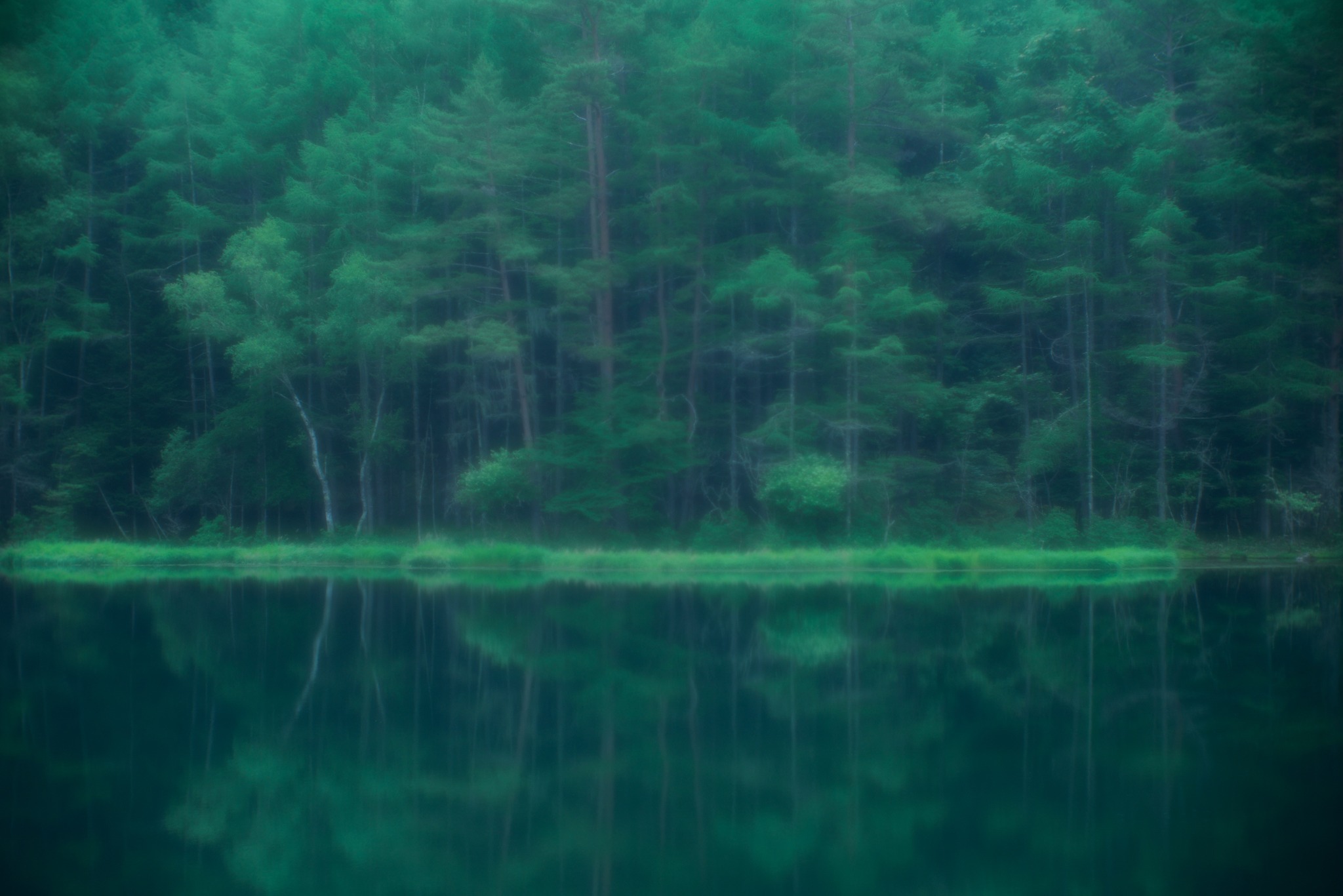 わずかな風が水面を揺らしていたが、やがて静まり、湖畔の緑を映す鏡となった。
