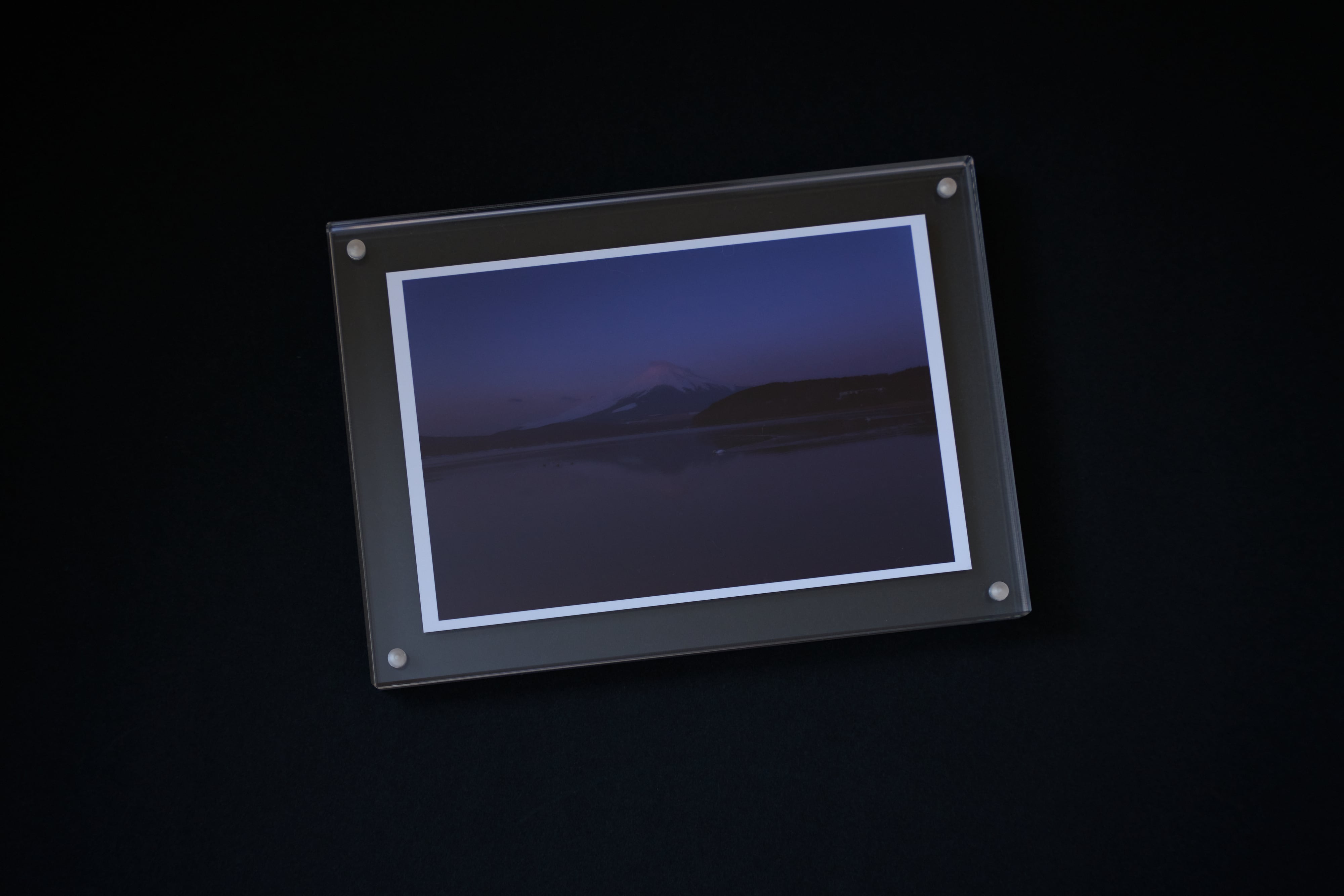 「霊峰富士(ハガキサイズプリント+アクリルパネル)」は日本のシンボル富士山をテーマにした作品です。繊細な描写と力強い構図がなんといっても魅力。アクリルパネルの額装によりデスクやベッドサイドなどちょっとしたスペースに飾ることができます。また、光の加減により印象が変わるため、見飽きることがありません。
