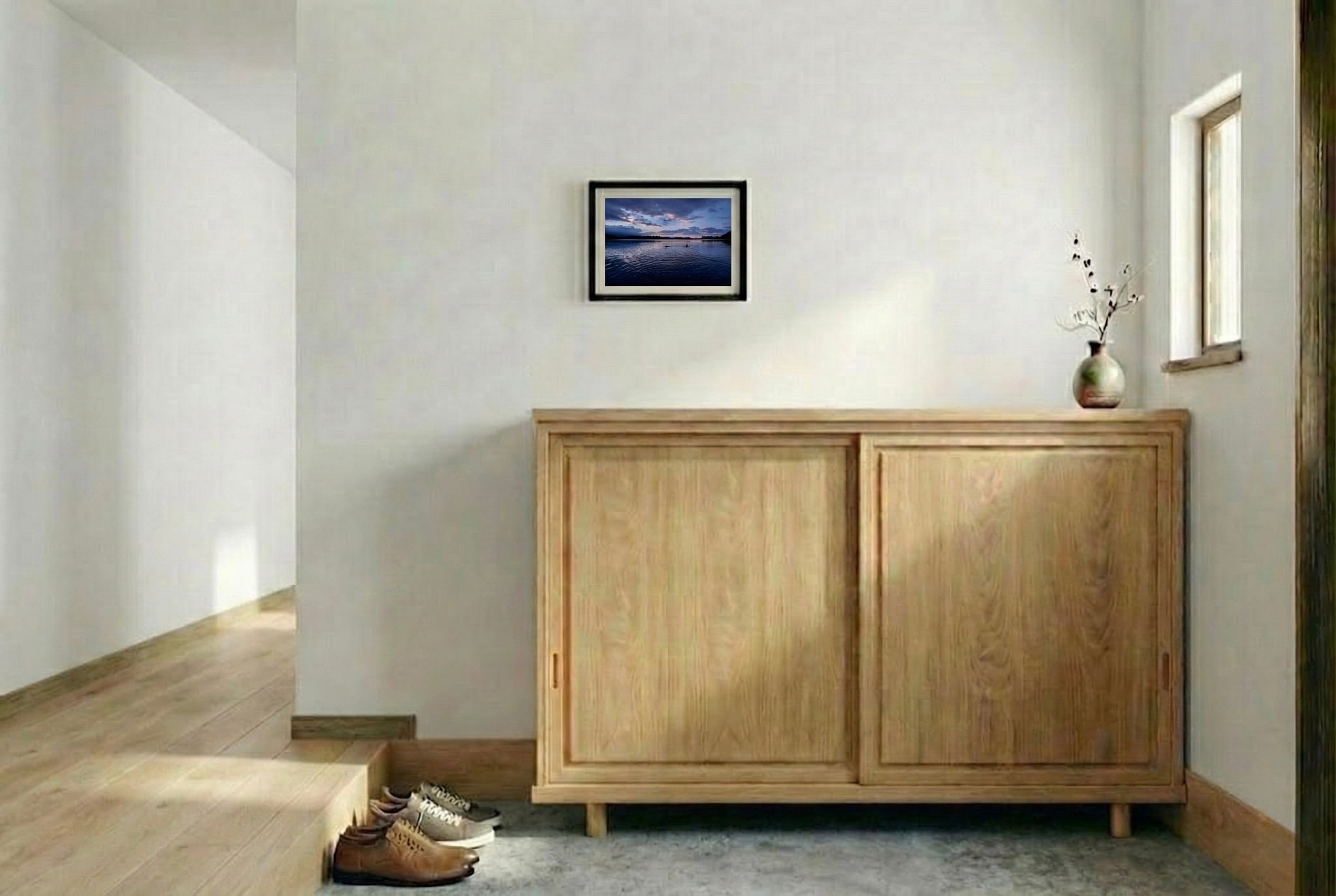 こちらは額装の写真作品です。A5サイズのプリントをA4サイズの額装でお届けするので、すぐに飾っていただけます。ご注文を受けてから額装制作に入るため、お届けまで約2週間かかります。どうぞご了承ください。